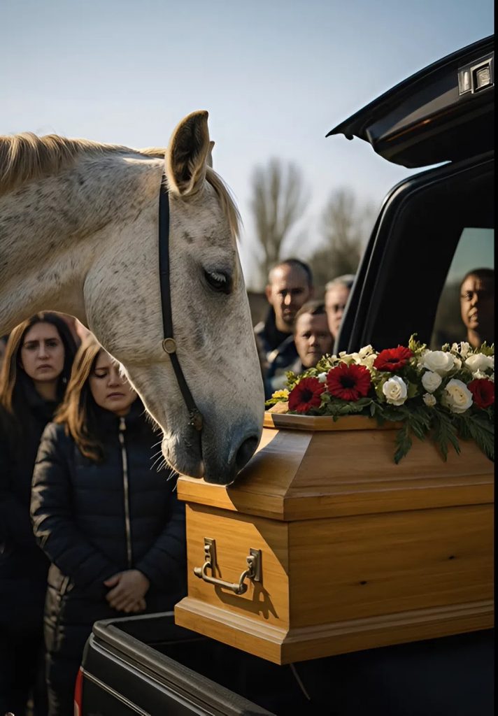 Sitten se hirnahti hiljaa. Mutta se ei kuulostanut eläimen ääneltä – se oli sydämen huuto, täynnä tuskaa ja ikävää. Ihmiset itkivät avoimesti. Jotkut polvistuivat, toiset rukoilivat hiljaa. Kaikki tiesivät: hevonen surisi mestariaan.