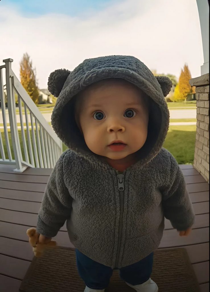 Näytöllä näkyi selvästi pieni tyttö valkoisessa mekossa, hiukset letillä, pehmolelu käsissään. Hän ojensi kätensä ovikelloa kohti — ja silloin kuva alkoi välkkyä.