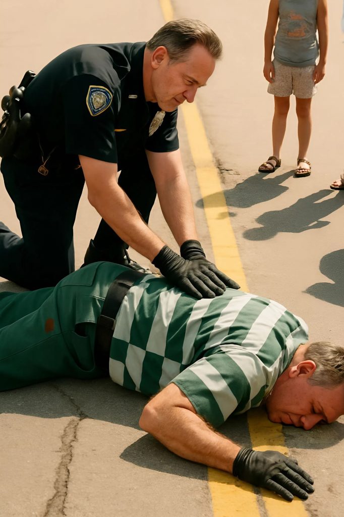Aurinko sinä päivänä oli armoton — kolmekymmentäkuusi astetta varjossa, ilma värisi kuumuudesta. Asfaltti kiilsi kuin sulanut lasi. Ja silti siellä makasi Harold, mieheni, seitsemänkymmentäkaksivuotias, kasvot maata vasten. Käsiraudoissa. Hänen nivelrikon runtelemat polvensa painuivat hehkuvaan bitumiin, kun neljä poliisiautoa piiritti hänen pyöränsä kuin hän olisi vaarallinen rikollinen.