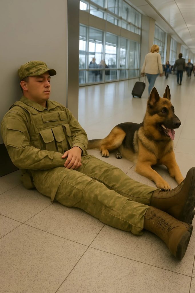 🐕 ❤️ Lentokentän odotusaulassa laskeutui yhtäkkiä hiljaisuus. Lattialla, uloskäynnin nro 14 vieressä, makasi mies sotilaspuvussa, ja hänen vieressään — hänen koiransa, joka ei päästänyt ketään lähelle. Tavallisina päivinä lentokenttä elää tuttua rytmiään: matkalaukkujen kolina laatoilla, kahvikoneiden sihinä, puheensorina ja lyhyet kuulutukset lähtevistä lennoista. Mutta sinä päivänä tuo tuttu äänten meri pysähtyi — kuin itse ilma olisi pidättänyt hengitystään.