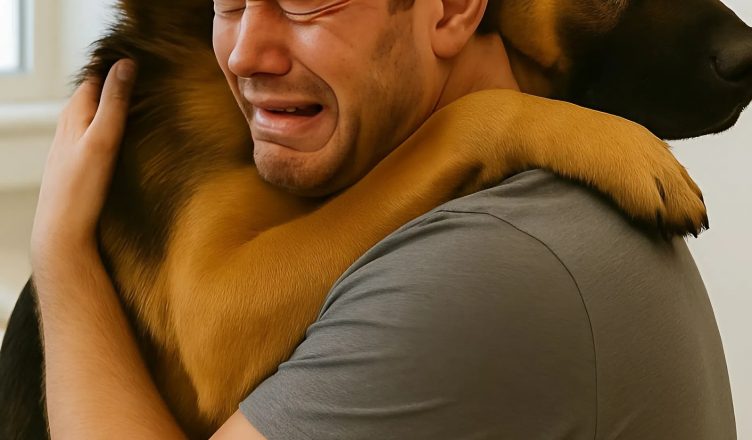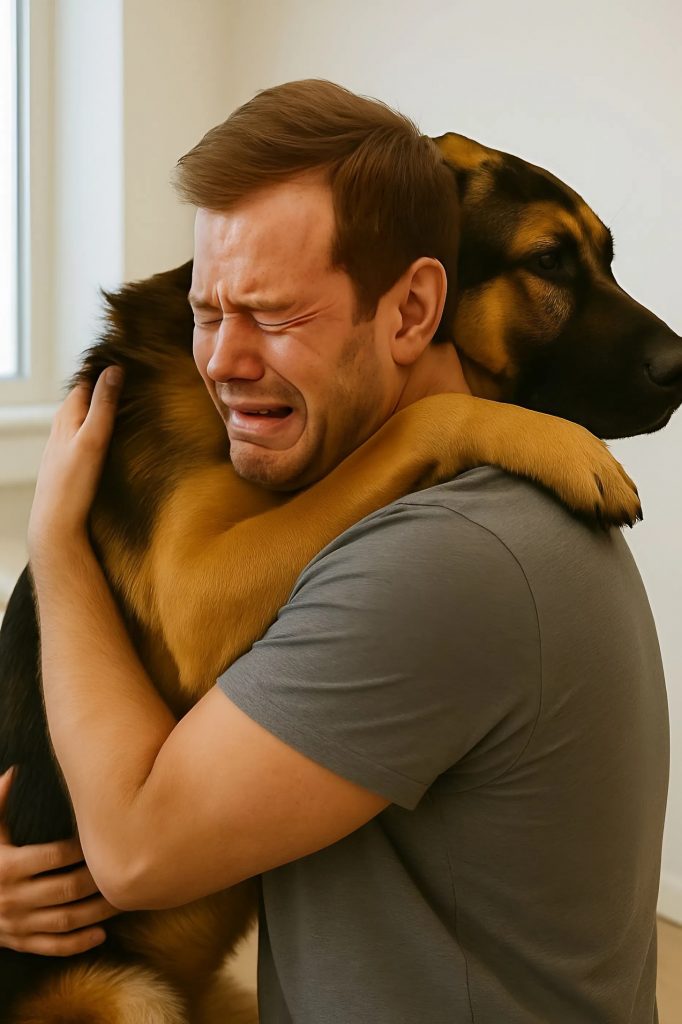 Kuin ymmärtäen joka sanan, koira laski tassunsa miehen olkapäälle ja painautui heikosti häntä vasten. Mies ei enää pystynyt pidättelemään itseään — hän purskahti itkuun ja halasi uskollista ystäväänsä.