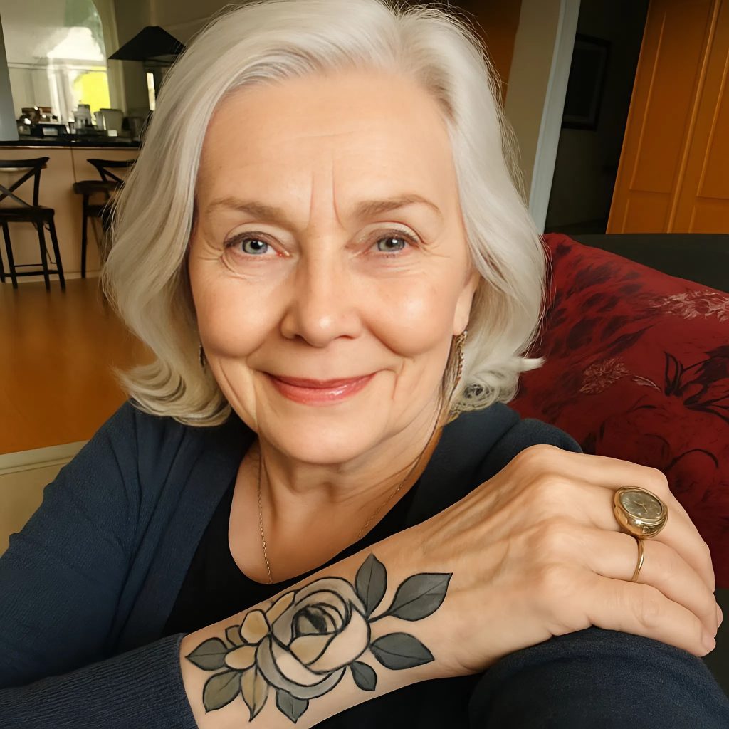 Kodikkaassa tatuointistudiossa hän valitsi hienostuneen, kevyen kuvion, joka heijasti hänen elämänsä matkaa. Kun tatuoija sai työnsä valmiiksi, Alice ei voinut irrottaa katsettaan — tatuointi hehkui hänen ihollaan kuin muistutus: ikä on vain numero, jolla ei ole valtaa sieluun. 🤔