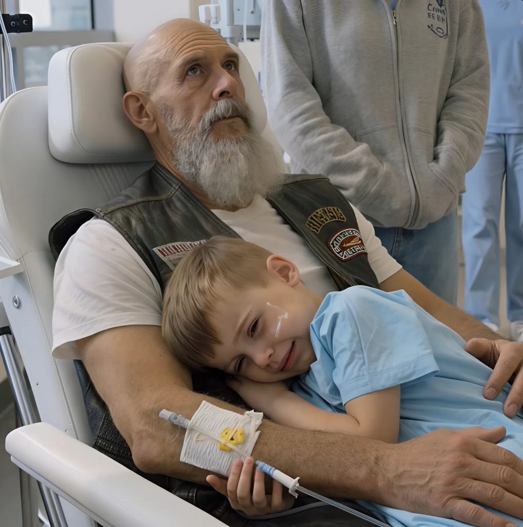 Hoitajat pysähtyivät, äiti peitti kasvonsa käsillään ja alkoi itkeä. Ja vanha moottoripyöräilijä, jonka iho oli täynnä hoitojen jälkiä, istui tuolissa, keinuutti vierasta lasta kuin omaansa.