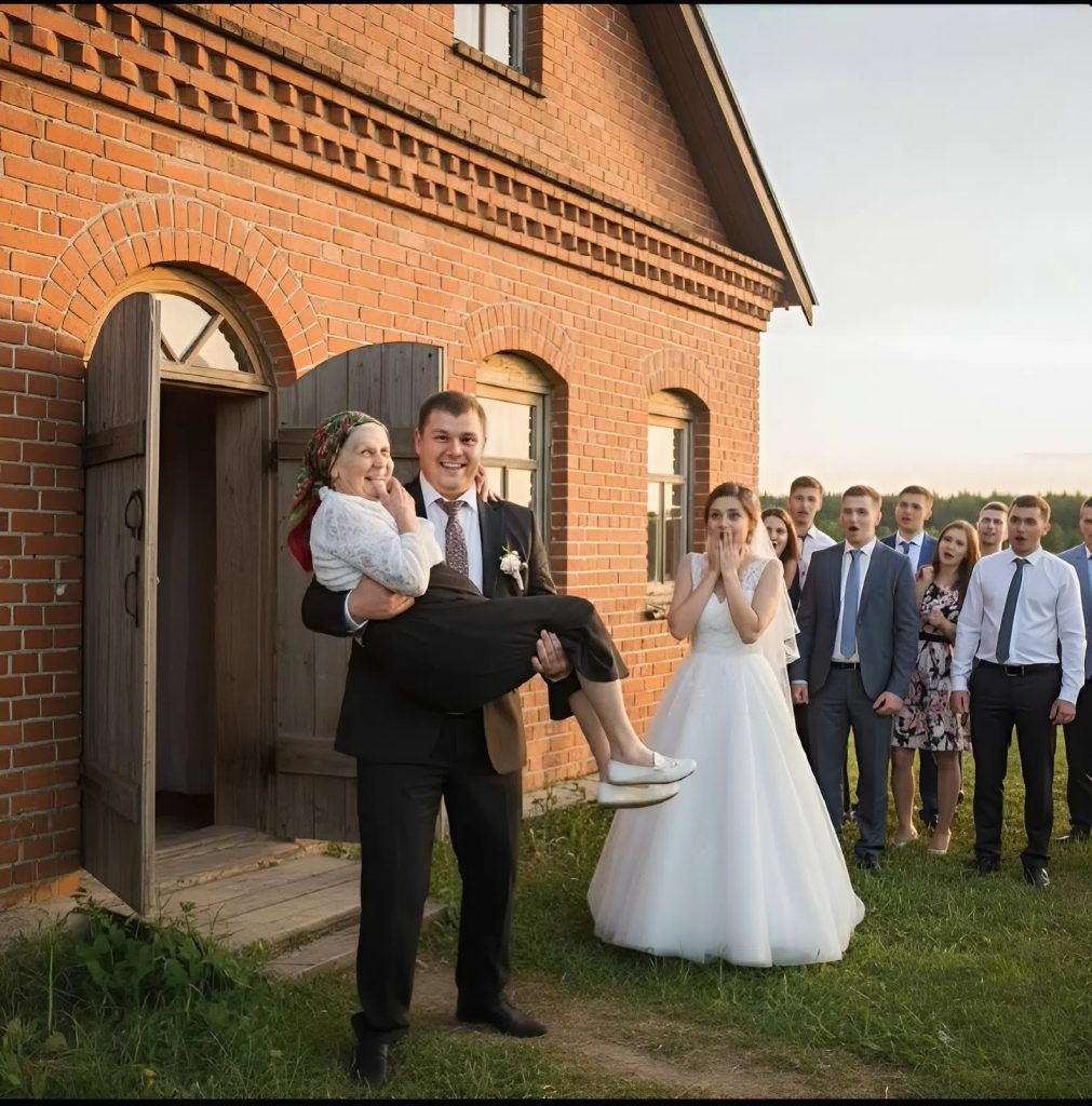 Sulhanen kääntyi äkkiä – ei hänen puoleensa, vaan äitinsä puoleen. Äiti seisoi hieman sivussa, onnellisena ja liikuttuneena. Ja yhtäkkiä, kaikkien silmien edessä, sulhanen nosti äitinsä syliinsä – juuri niin kuin hänen olisi pitänyt kantaa morsian.