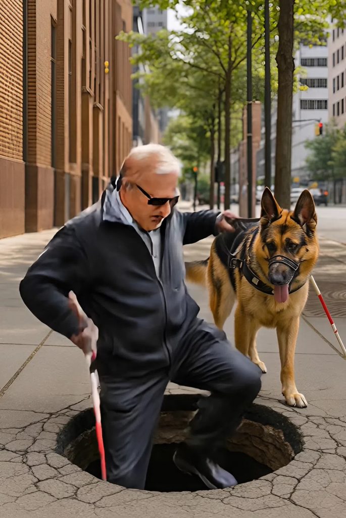 Nuori nainen, joka käveli kadun toisessa päässä, huomasi liikkeen kuopan sisällä. Kun hän tuli lähemmäksi ja näki miehen sekä häntä epätoivoisesti auttavan koiran, hän hätkähti ja tarttui välittömästi puhelimeensa soittaakseen hätäkeskukseen.