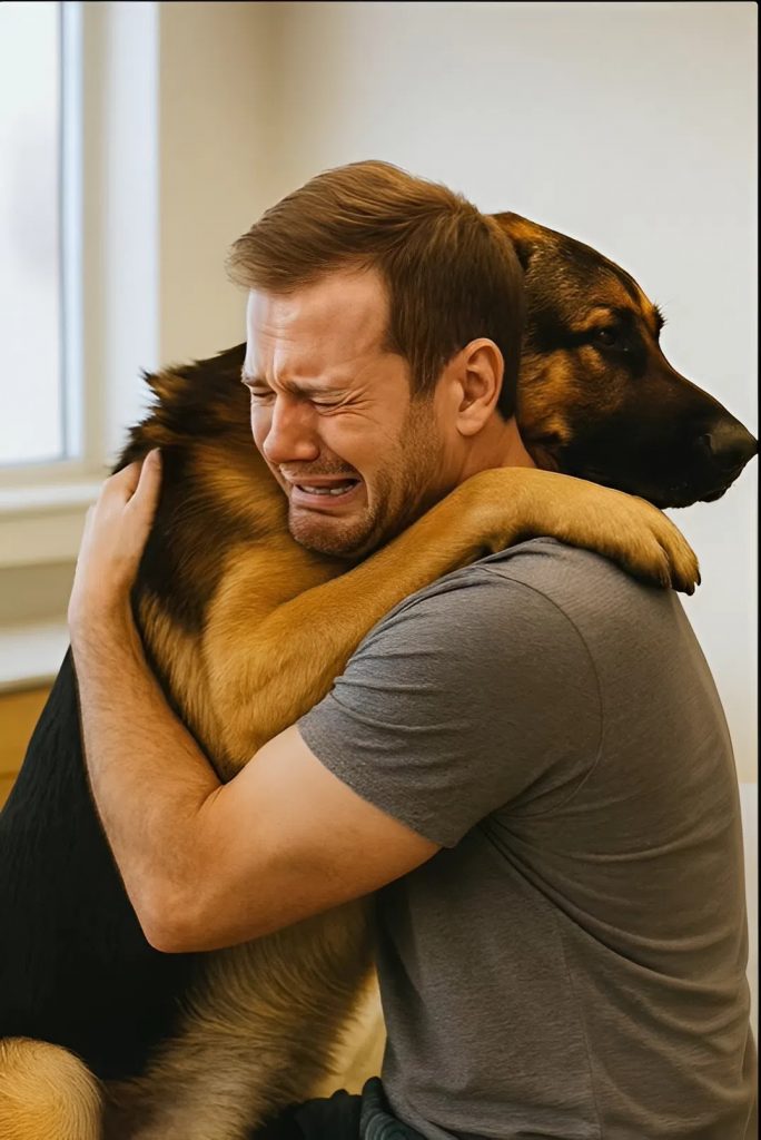 Koira, kuin se olisi ymmärtänyt jokaisen sanan, asetti tassunsa hänen olkapäilleen ja painautui lähelle. Mies puristi sitä tiukasti ja alkoi itkeä ääneen.