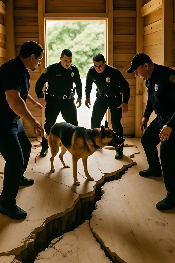 Silloin palveluskoira pysähtyi. Sen korvat nousivat pystyyn, selkäkarvat nousivat, ja se alkoi murista matalasti ennen kuin ryhtyi raapimaan lattiaa aivan halkeaman reunalla. Se oli varma. Jotain oli alhaalla.