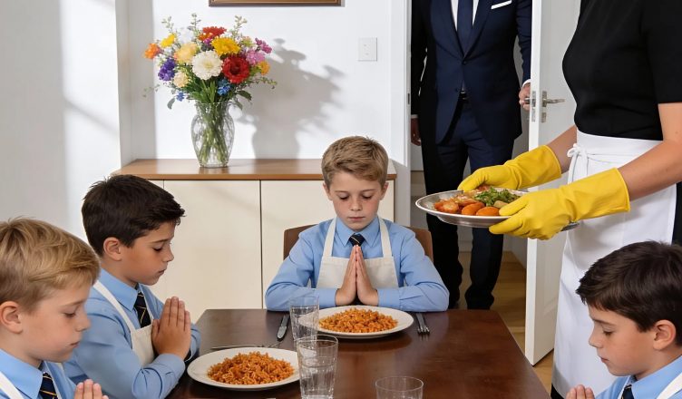 Elena, nuori taloudenhoitaja vaatimattomassa työasussa, ruokki heitä rauhallisesti. Ateria ei ollut ylellinen. Vain riisiä. Mutta pojat katsoivat sitä kuin aarretta.