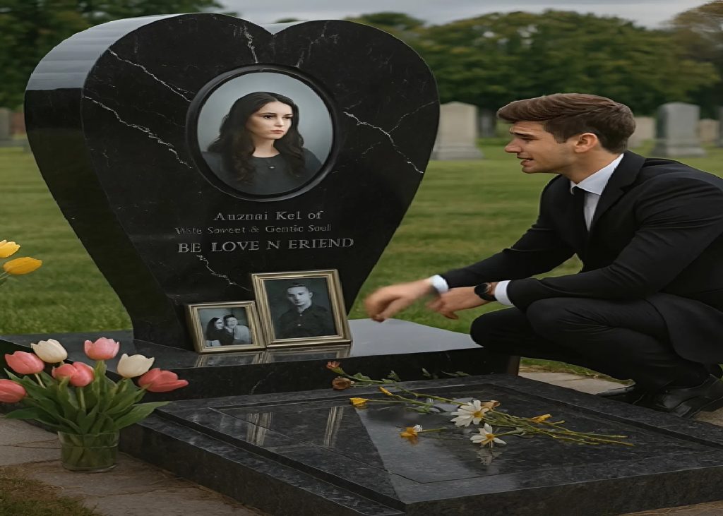 Hänen edessään kohosi suuri musta, sydämenmuotoinen hautakivi. Keskellä oli hänen kihlattunsa valokuva, sama lempeä hymy. Haudalla oli tuoreita kukkia. Joku kävi täällä usein.