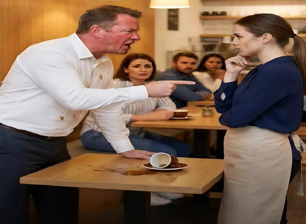 ”Oletko täysin kyvytön?!” hän huusi viivyttelemättä. ”Kaadoit kahvin ravintolan omistajan päälle! Miten sinut on voitu palkata tänne?”