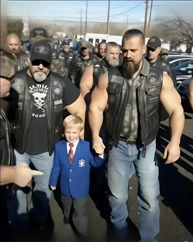 Nahkatakkeihin pukeutuneet miehet seisoivat hiljaa rivissä. Tunnelma oli vakava ja kunnioittava.