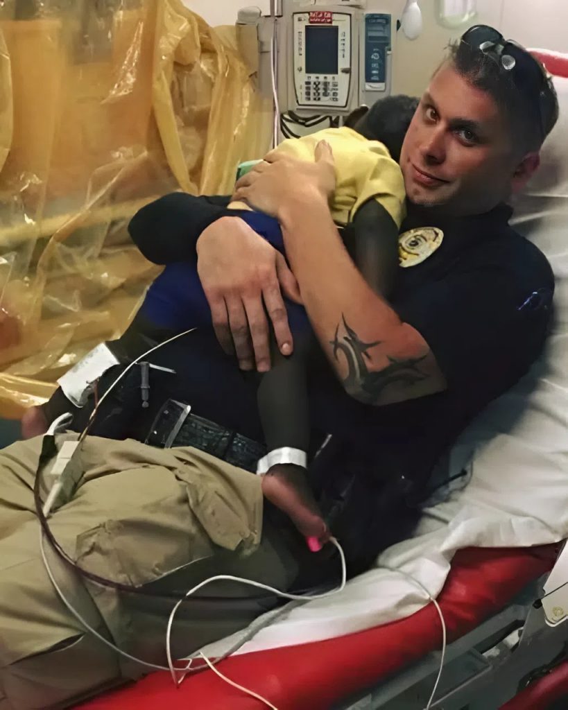 Vain hetkeä aiemmin lapsi oli itkenyt lohduttomasti, eikä kukaan ollut saanut häntä rauhoittumaan. Mutta heti kun poika painoi päänsä poliisin rintaa vasten, hänen hengityksensä alkoi tasaantua. Hän nojasi päätään luotiliiviä vasten kuin pehmeää tyynyä ja tarttui pienillä käsillään kiinni univormuun.