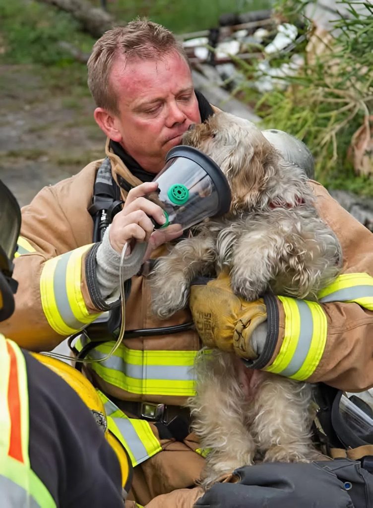 Yksi palomiehistä kääntyi heti takaisin ja juoksi savun täyttämään taloon. Näkyvyys oli lähes olematon ja ilma raskasta hengittää. Hän ryömi lattiaa pitkin, missä ilma oli hieman puhtaampaa, ja etsi huone huoneelta. Lopulta hän kuuli heikon vinkaisun. Sängyn alta löytyi pieni, vapiseva koiranpentu, joka tuskin enää hengitti. Palomies kietoi pennun varovasti takkiinsa ja kantoi sen nopeasti ulos.