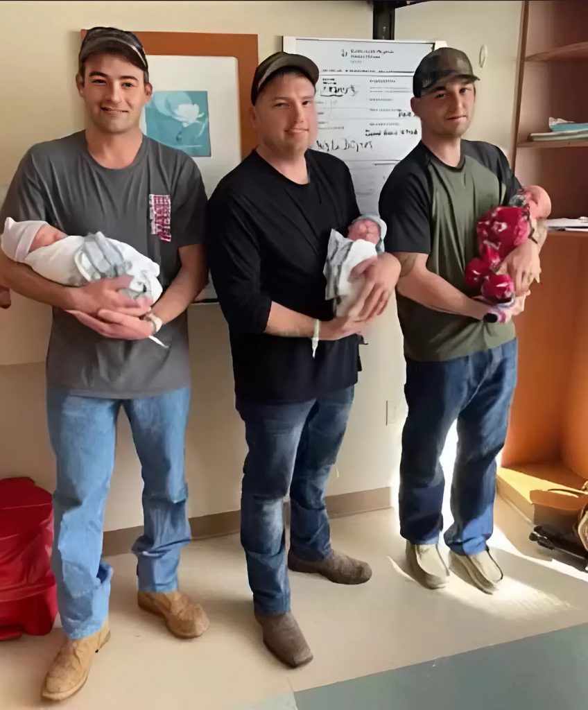 Hoitajat nauroivat ja sanoivat, etteivät olleet koskaan nähneet mitään vastaavaa. Otimme jopa yhteiskuvan sairaalan käytävällä — jokainen meistä piti sylissään pientä vastasyntynyttä, ja meillä oli yhä palomiestakit päällä.