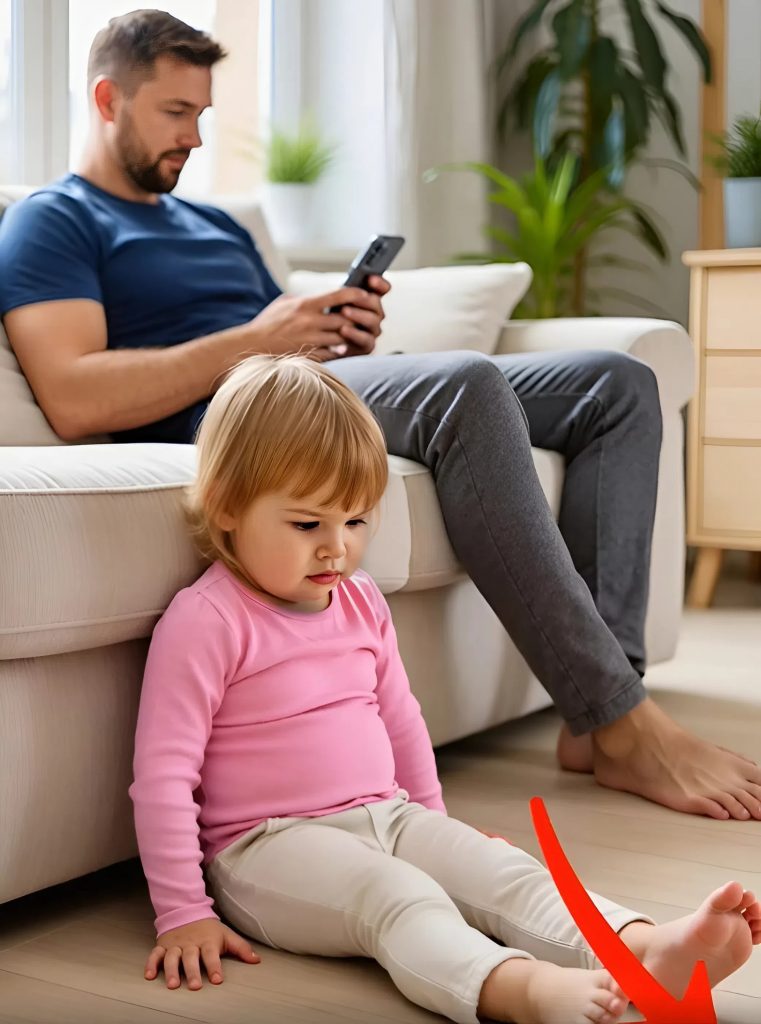 Aluksi kaikki näytti täysin tavalliselta. Tyttäreni leikki lattialla lelujensa kanssa. Mieheni istui sohvalla ja selasi puhelintaan, näyttämättä juurikaan huomaavan lasta.