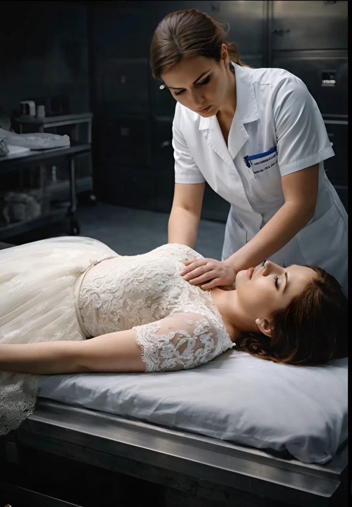 Kun omaiset oli saatettu pois, morsiamen ruumis jäi yksin kylmäsäilytyshuoneeseen. Lääkäri tarkisti nopeasti asiakirjat ja sanoi: