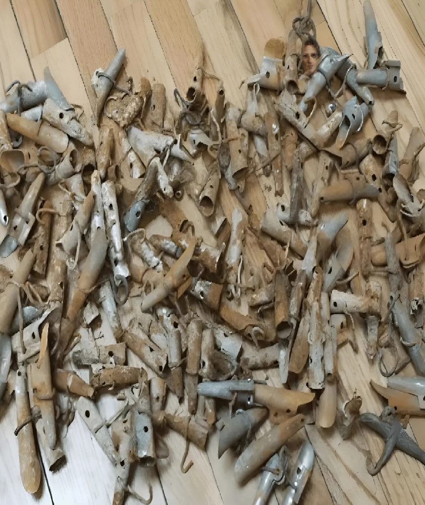 Ämpäri oli täynnä outoja metalliesineitä. Ne eivät muistuttaneet tavallisia työkaluja tai käyttöesineitä. Joissakin oli teräviä reunoja, toisissa kummallisia kaarevia muotoja, kuin käsin tehtyjä. Osa näytti mekaanisilta osilta, mutta mikään ei muodostanut kokonaisuutta. Jotkut esineet tuntuivat jopa uhkaavilta — kuin ne olisi tehty johonkin synkkään tarkoitukseen.