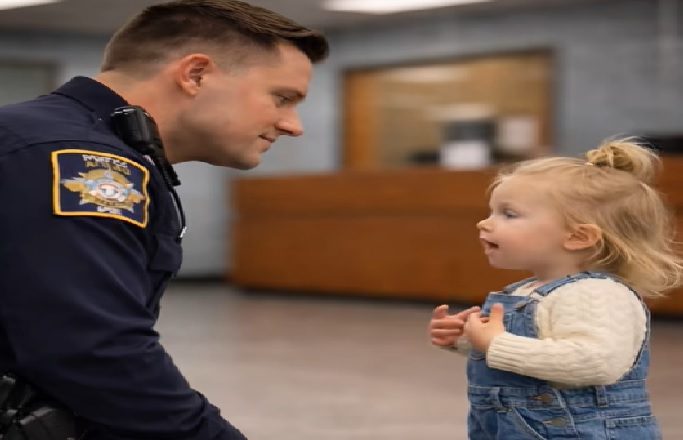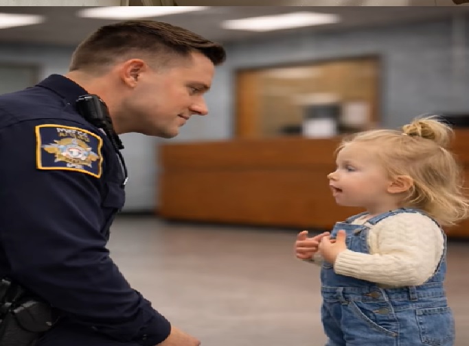 Yksi päivystävistä poliiseista kuuli keskustelun. Hän astui lähemmäs, kyykistyi tytön tasolle ja hymyili lempeästi: