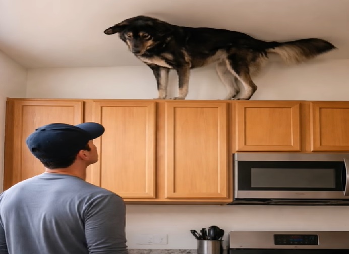 Joka yö, kuin kellon mukaan, se meni keittiön kaappien luo, nousi takajaloilleen ja tuijotti ylöspäin. Eikä vain katsonut — se murisi. Matalasti, varoittavasti, kuin aistien jonkin uhan. Välillä se yritti hypätä ylemmäs, raapien kaapinovia. Se näytti niin luonnottomalta, että heräsin useita kertoja yöllä sydän hakaten.