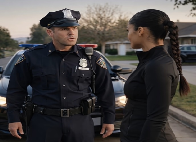 Toinen miehistä näytti virkamerkkinsä. Alex vilkaisi sitä — ja ensimmäistä kertaa hänen ilmeensä muuttui.