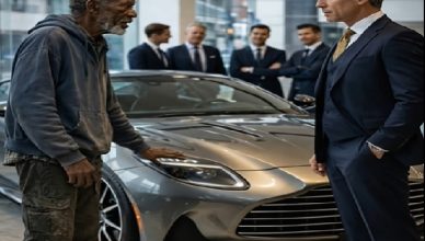 Suuret lasipinnat heijastivat kaupungin valoja, ja sisällä, kuin toisessa maailmassa, seisoi täydellisiä, kiiltäviä autoja. Hän ei liikkunut, vain katsoi — aivan kuin pelkäisi,